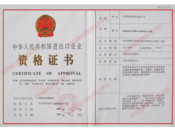 青島墨河鑄造有限公司 聯(lián)系人:董照 電話(huà):13953213469(微信同號(hào)) 座機(jī):0532-87566543 郵箱:mohe@moher.cn QQ:1678294021 地址:青島即墨市泰山一路南端186號(hào)